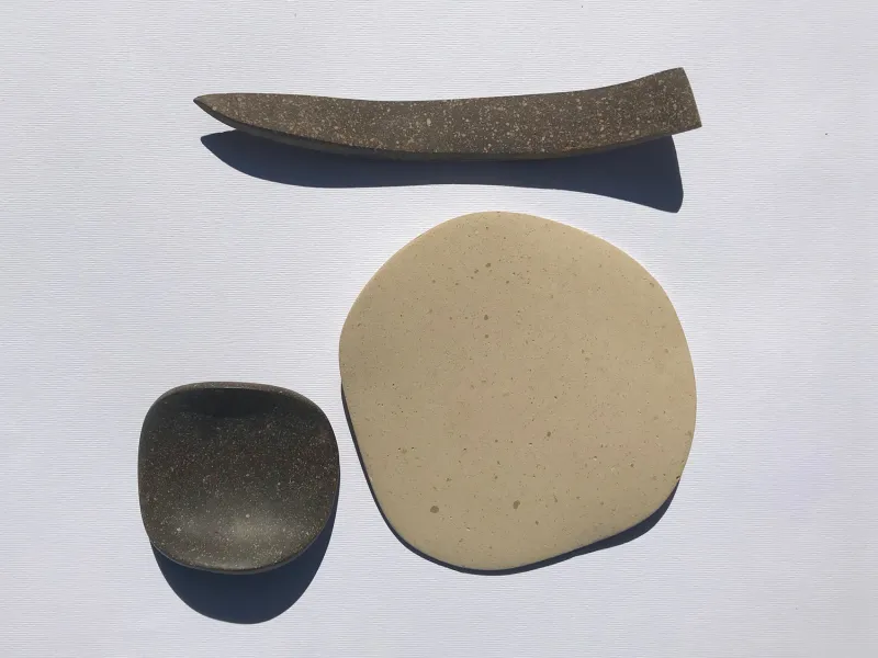 Anna Perugini works with Olive Pomace, transforming it into 3 different materials derived from skin, pulp and stones that can be molded, pressed, or 3D printed. She obtains the matter from the small farms in the area connecting local knowledge, small-scale farms, mills, and research